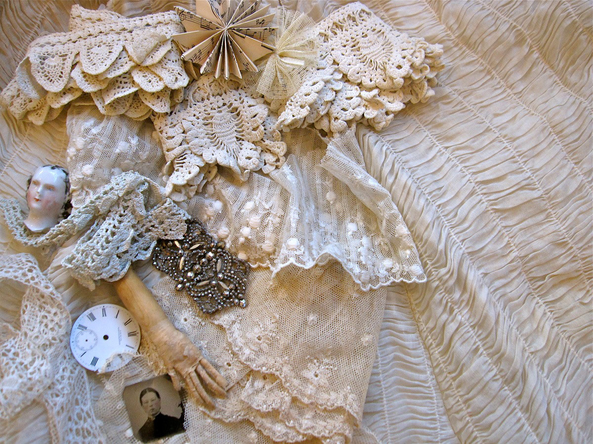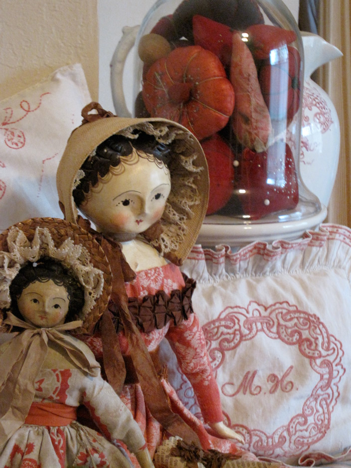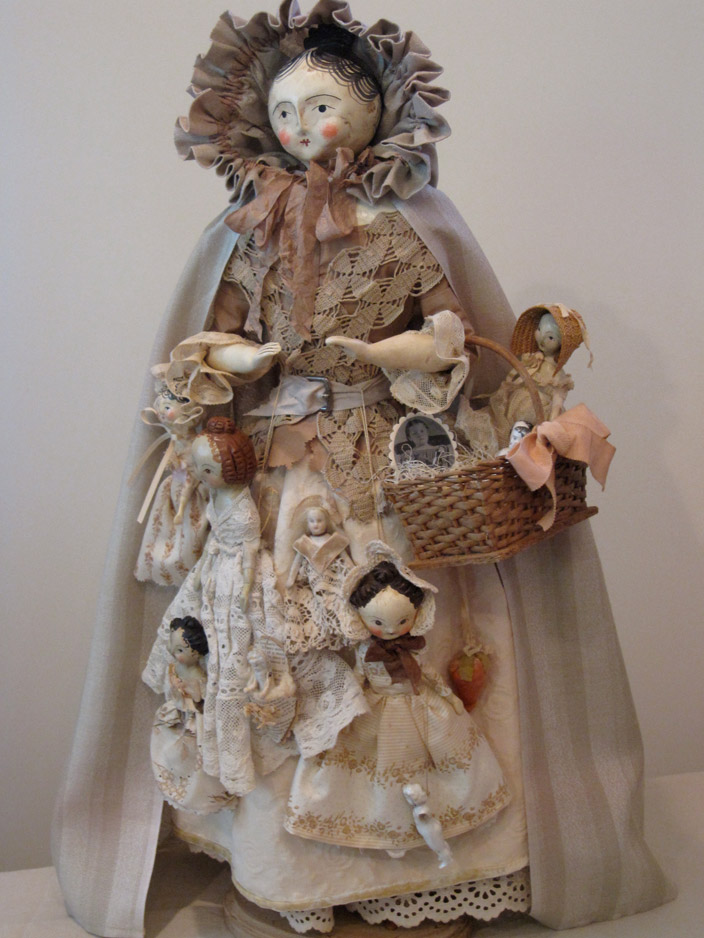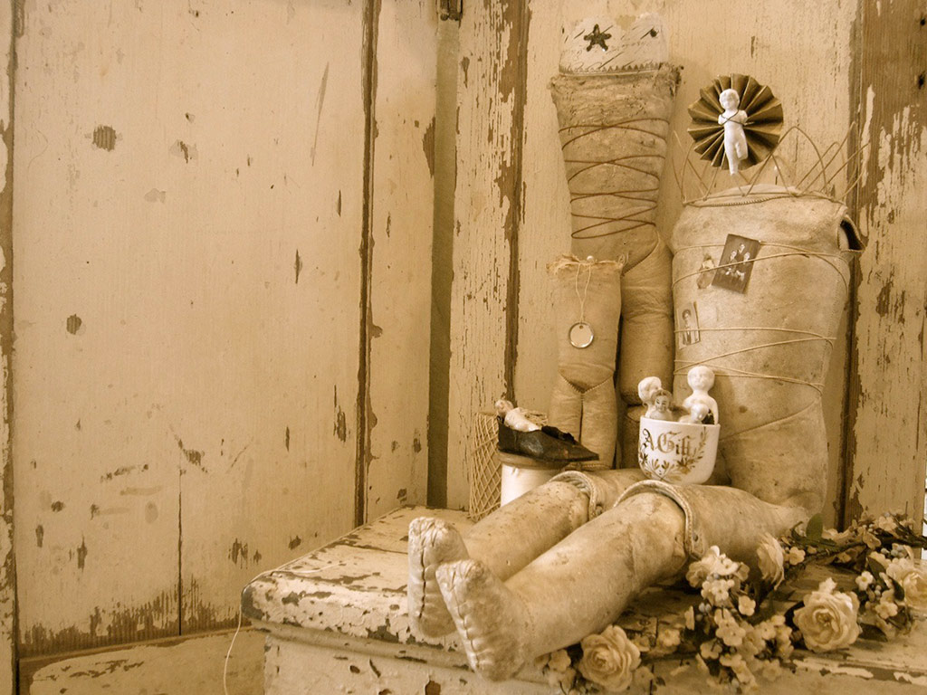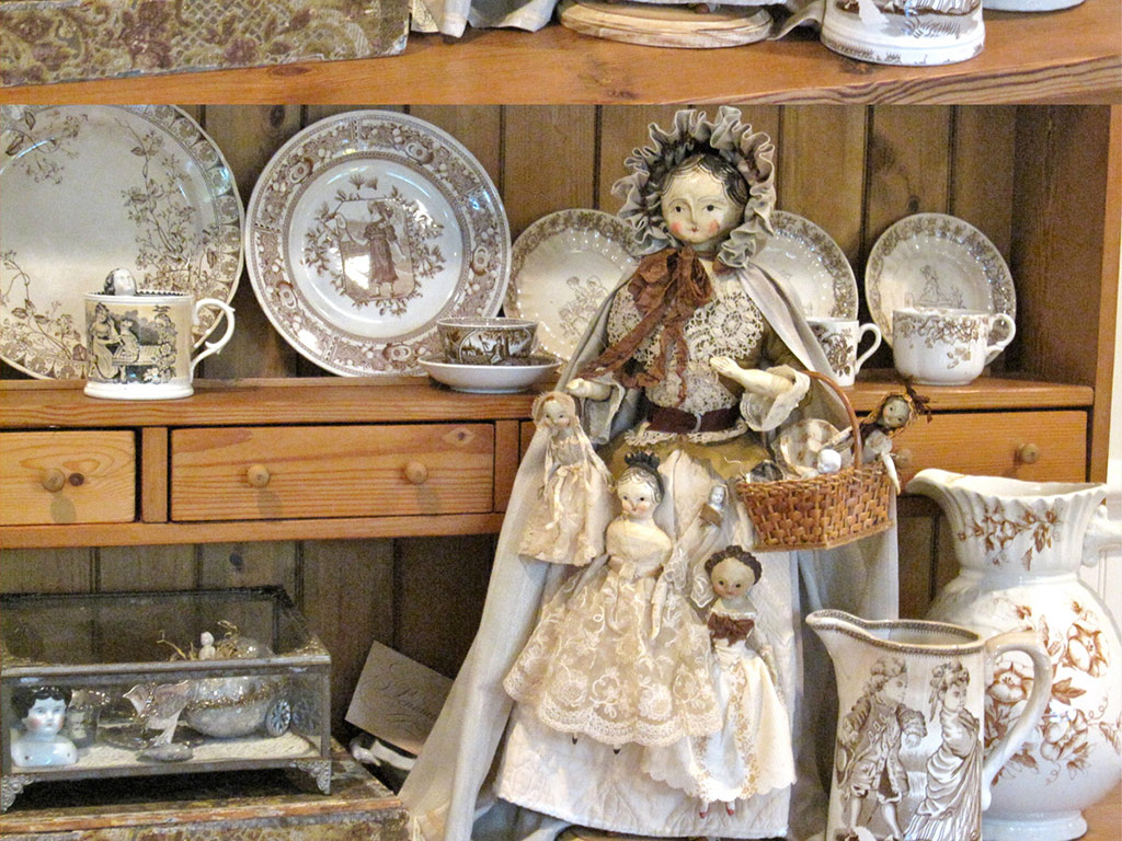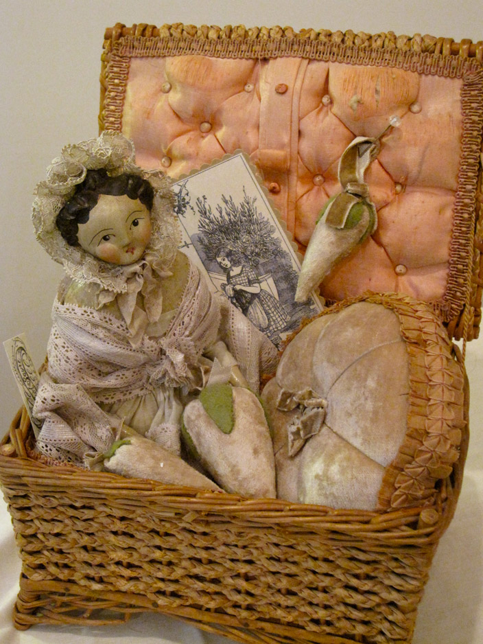 Nicol has a passion for antique dolls, toys, sewing, and household implements. It is from these collections that she draws her inspiration.