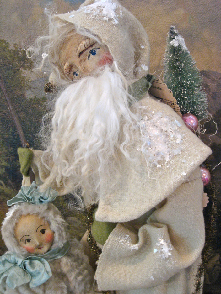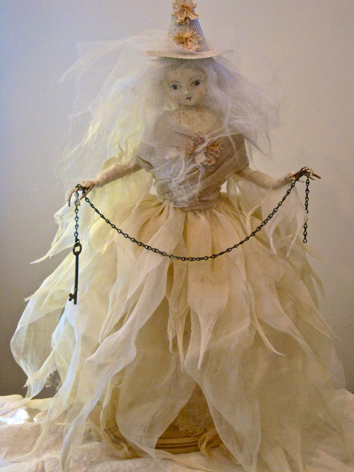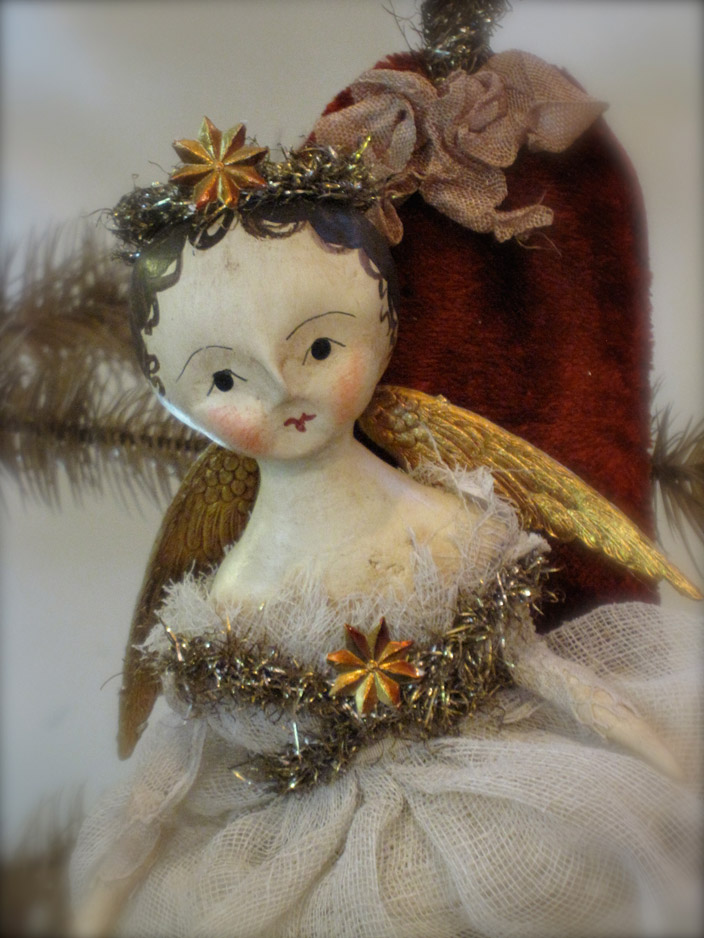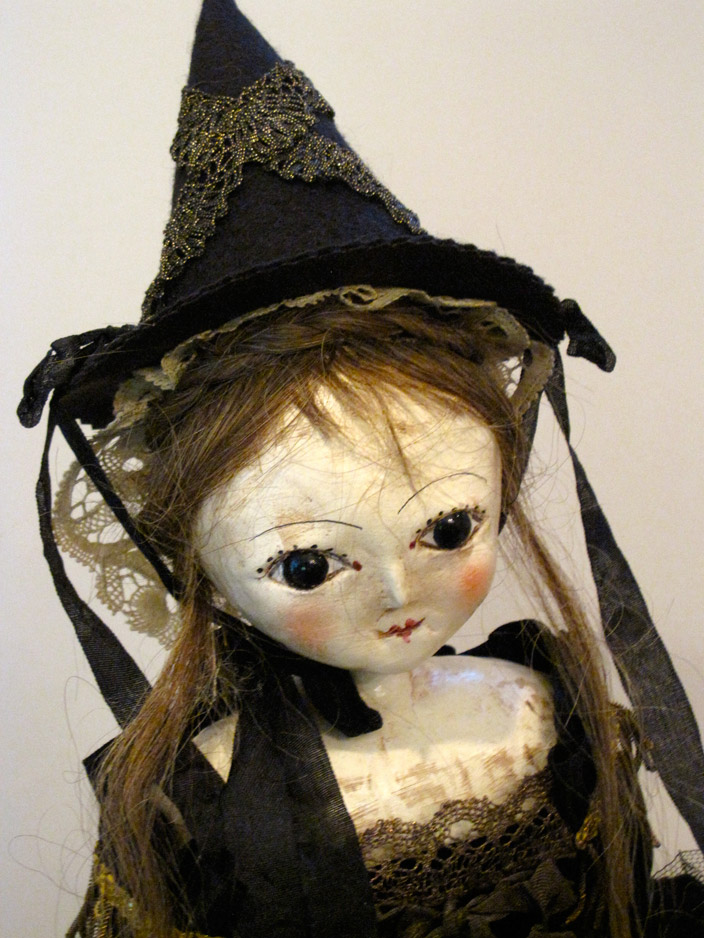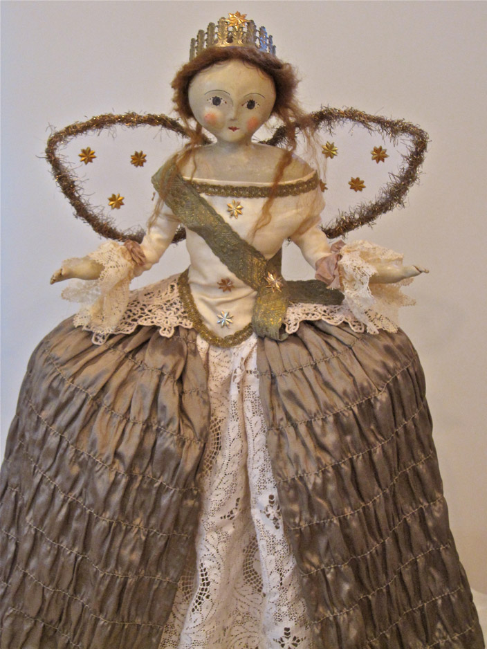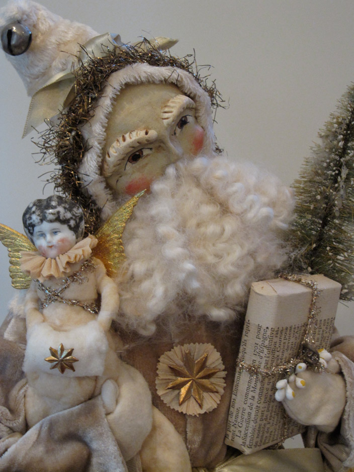 Nicol Sayre’s art is reminiscent of a bygone era when much pride was taken in creating things by hand. Each doll and figure is a one-of-a-kind creation. Sometimes Nicol follows a certain theme, but each doll has a different expression and vintage elements, which give them their unique personality.