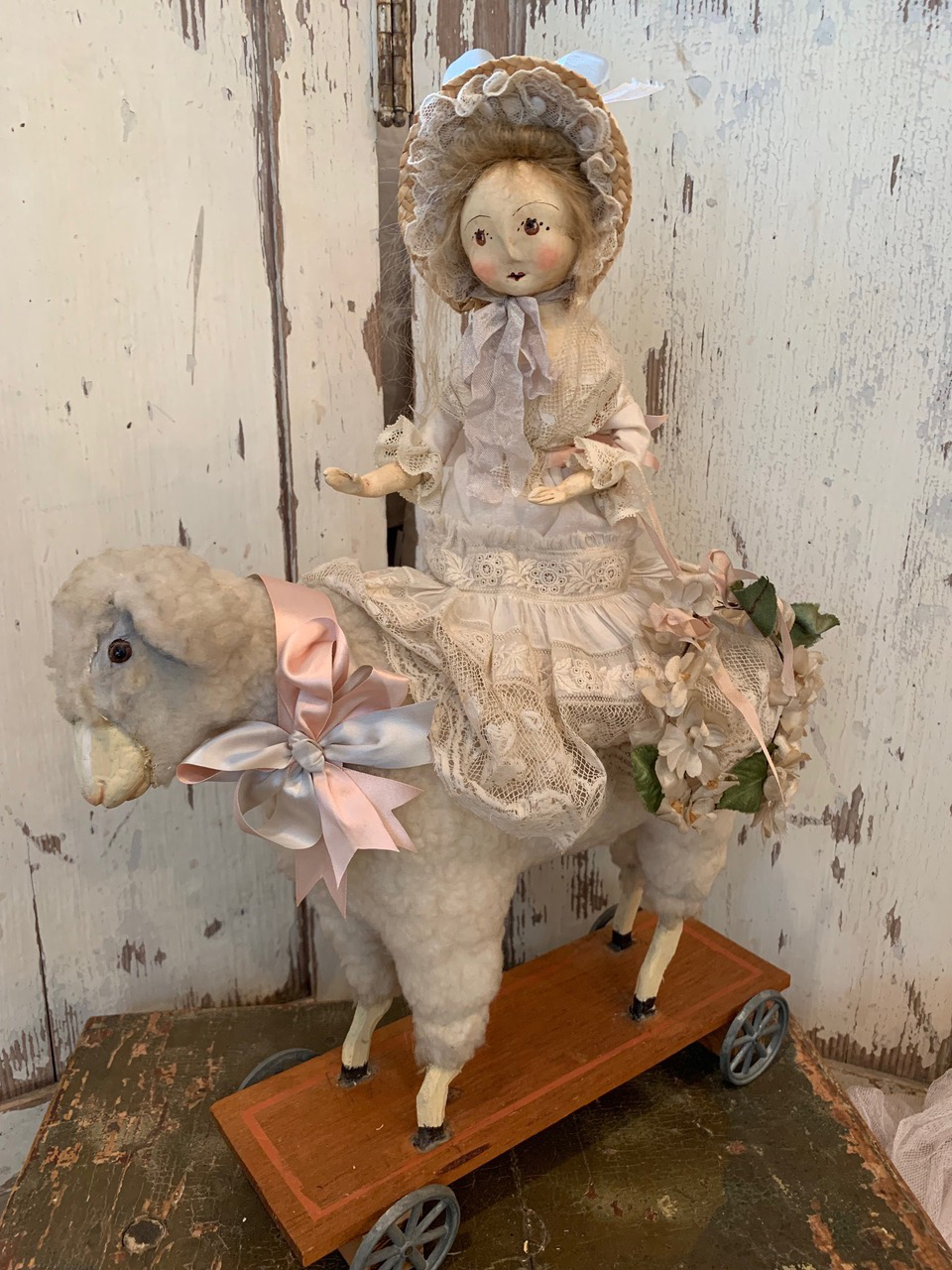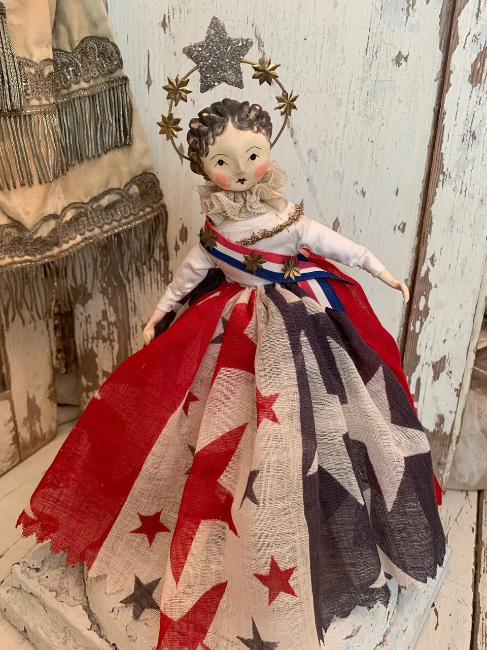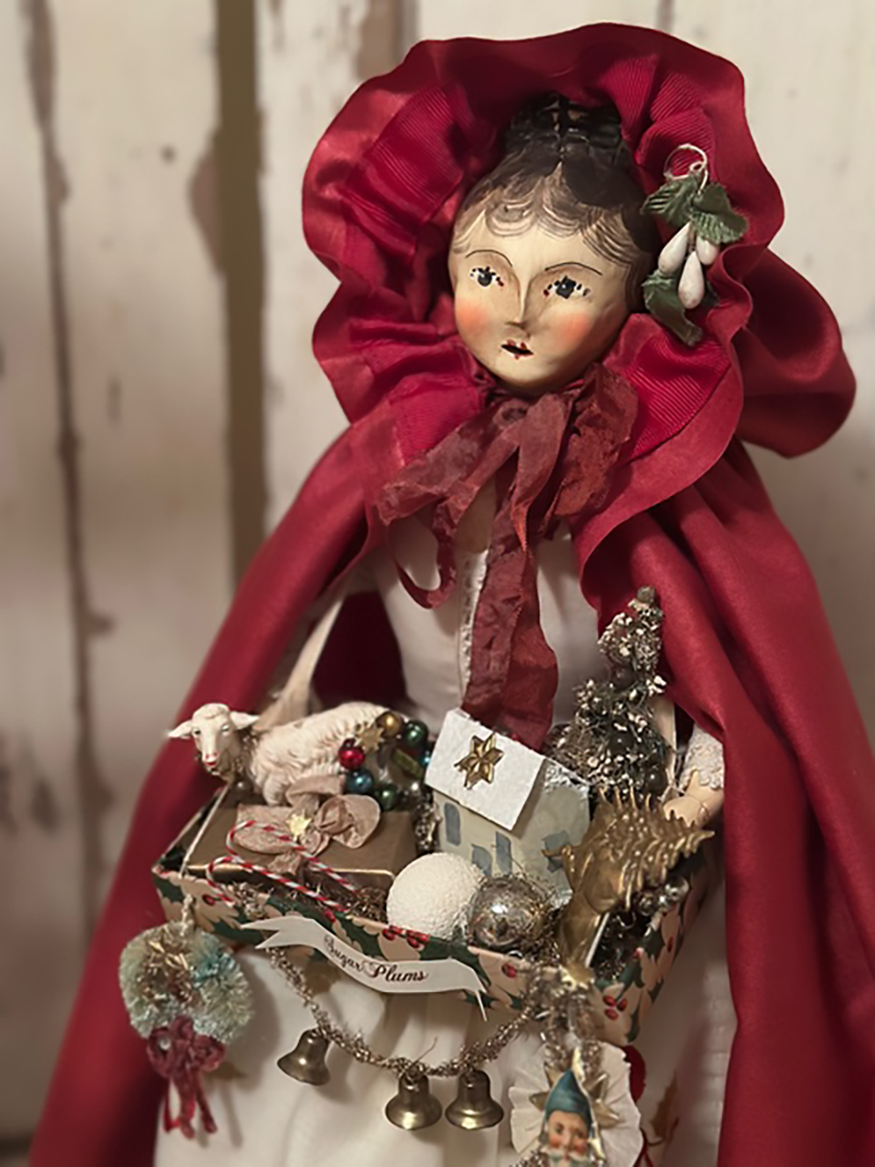 Nicol Sayre’s art is reminiscent of a bygone era when much pride was taken in creating things by hand. Each doll and figure is a one-of-a-kind creation. Sometimes Nicol follows a certain theme, but each doll has a different expression and vintage elements, which give them their unique personality.